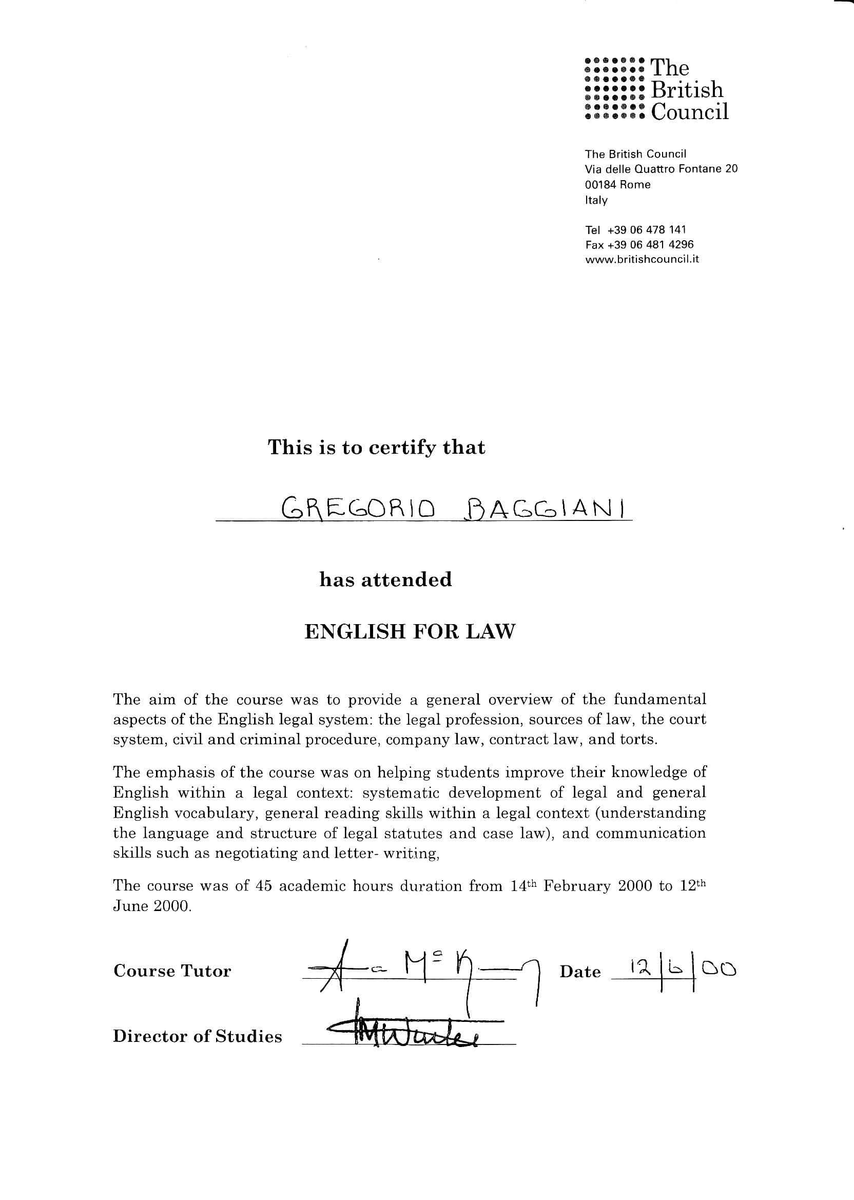 Certificato English Law