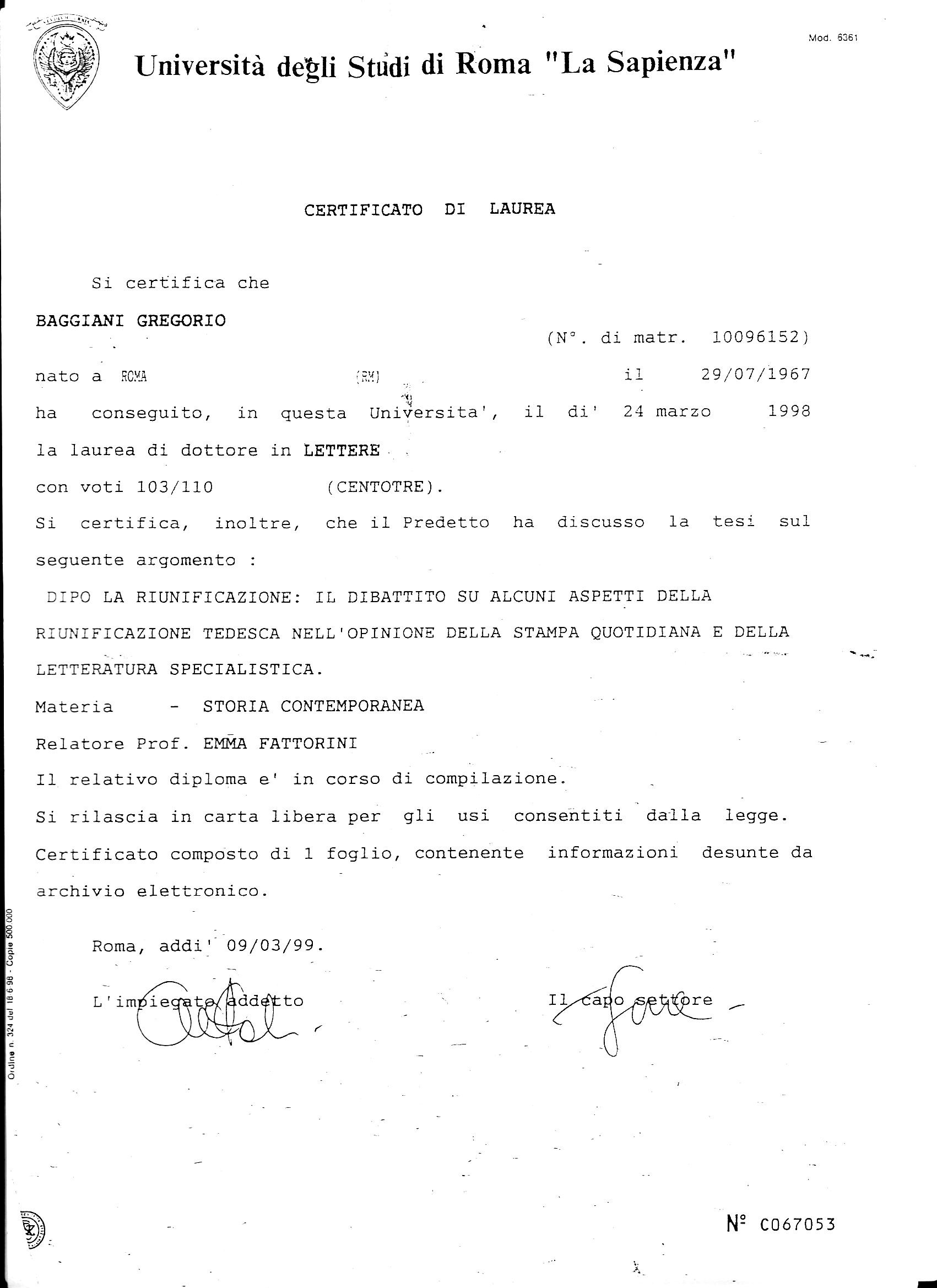 Certificato di Laurea